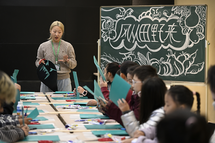 广州美院研究生给孩子们上皮影课,摄影:林希萌
