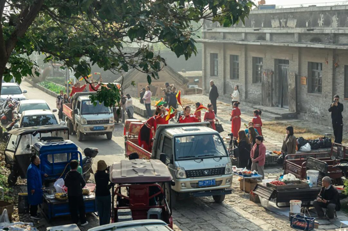孟泉村鼓舞队进入大南坡村,摄影:马晓明、林希萌