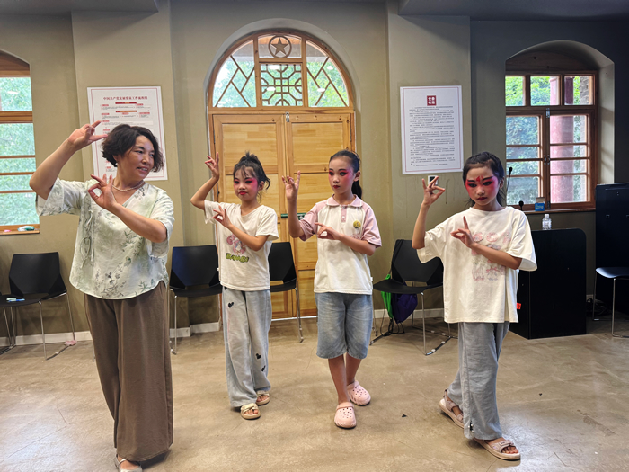 大南坡怀梆剧社的阿姨教孩子们表演,图片来源:左靖工作室