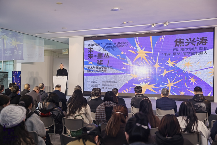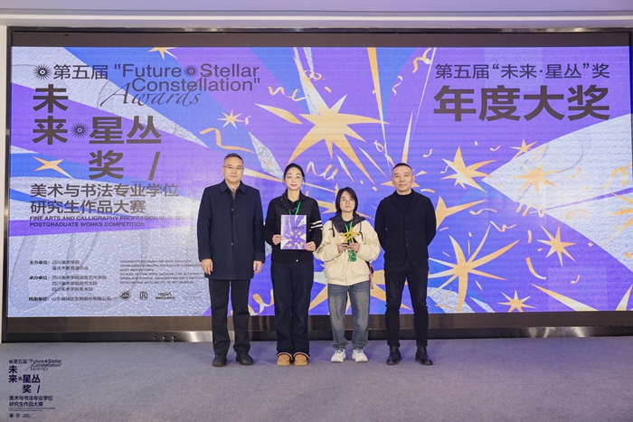2026年1月8日16:00,本届展览开幕式在四川美术学院美术馆1楼大厅举行,展览期间同步开展复评现场直播、作品导览、学术交流等活动。作为西南地区高等美术教育的标杆,四川美术学院始终以书写西部文化精神为己任,联合福瑞达生物股份等社会力量,通过“未来・星丛”奖搭建起西部艺术青年成长的优质平台。赛事不仅为青年创作者提供了展示才华的舞台,更致力于推动新时代艺术专业学位研究生培养的创新路径,以艺术力量服务国家战略与区域经济文化发展。