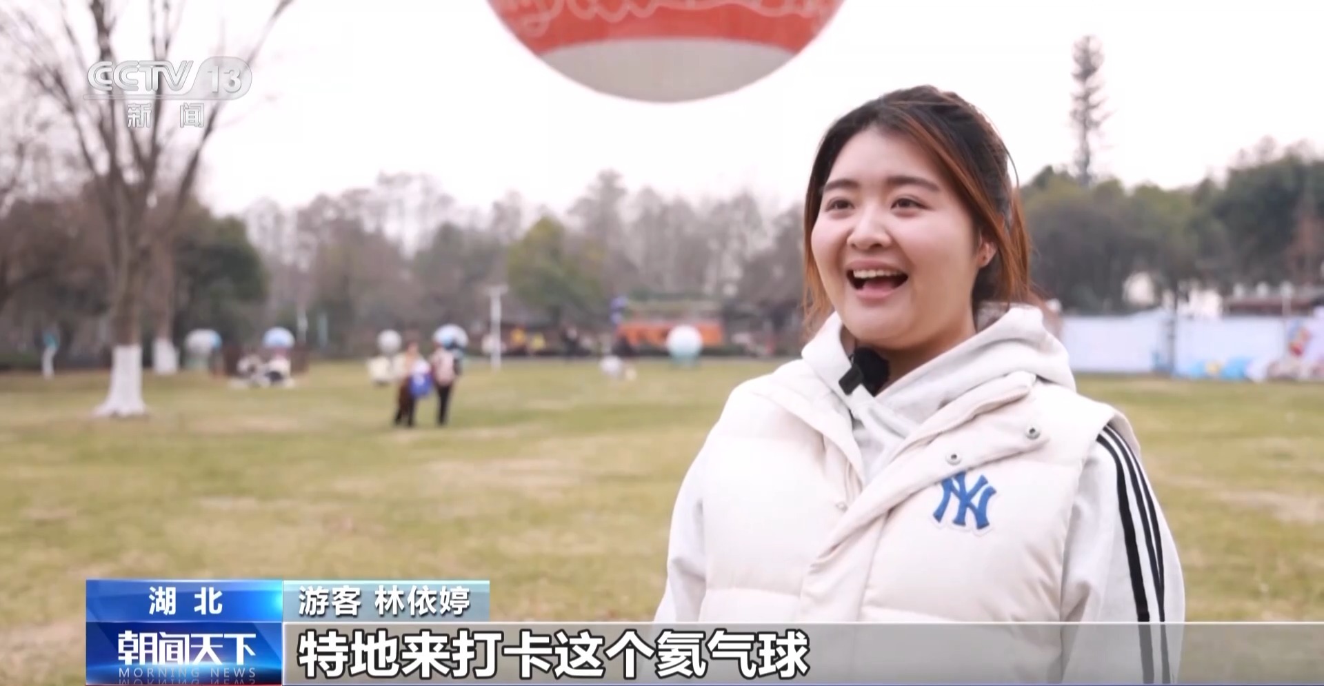 游客 林依婷:我看了电影《过家家》特地来打卡这个氦气球,登上氦气球我感觉非常浪漫。