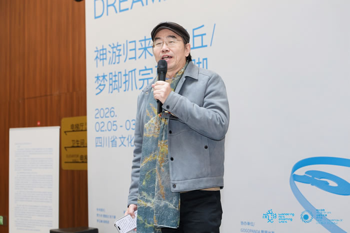 四川省文化馆馆长李琳在致辞中强调,文化的意义不止于表达,更在于连接:连接传统与创新、本土与世界、个人经验与群体精神。四川省文化馆长期致力于全国公共文化服务,愿意成为思想的发生地,成为广大公众重新理解“艺术为何、生活何在、精神何向”的窗口。希望观众在这场展览中,感受四川人幽默背后的思辨温度,在平凡的日常中发现非凡的生命力,从“形”中悟“神”,在“神游”中悟“识”,在当下的生活与文化中找到新的发现与力量。