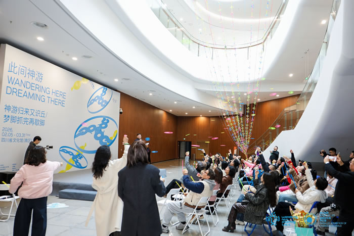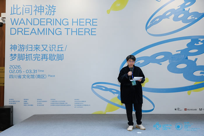 新年伊始,由四川省文化和旅游厅指导、四川省文化馆主办的“此间神游——神游归来又识丘/梦脚抓完再歇脚”(Wandering Here, Dreaming There)展览正式启幕。作为“烟火指数·成都双年展”的重要平行展,本次展览扎根巴蜀文化语境,从“神”字的多重语义出发,以“神游”为核心意象,既呈现了艺术的广博创造,也捕捉了市井民间的诙谐鲜活,实现了当代艺术语境与本土生活温度的深度链接。这是一场立足群众文化的当代艺术展览,更是群众文化进入当代艺术视野的一次极具开创性的艺术实践。