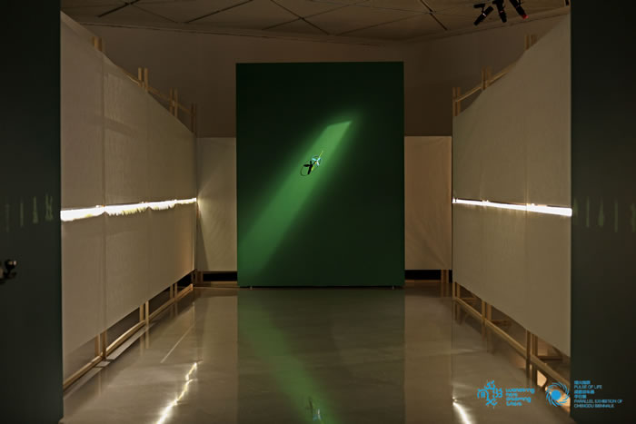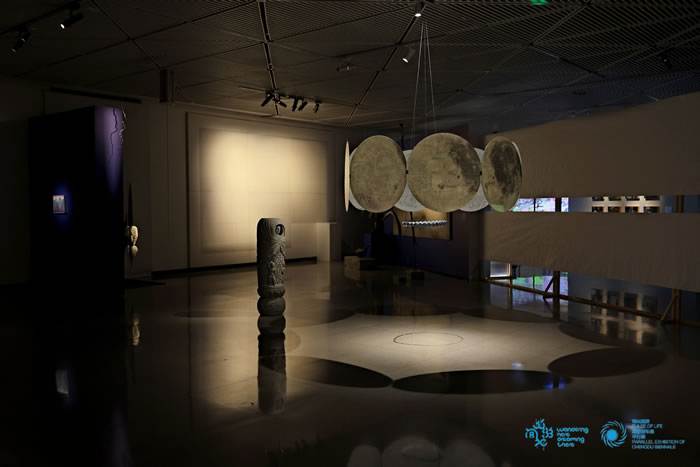 展厅内部被打造成一个充满想象力的多感官空间,一系列兼具互动性与学术深度的艺术作品,带领观众经历从漂移、升空、悬浮到回归丘陵的精神旅程。这场别样的观展体验,让观众在游走中理解当代艺术的表达方式与思维逻辑,思考“神”的多重意涵,一同神游在展厅、巴蜀大地与神工、神韵、神思中。