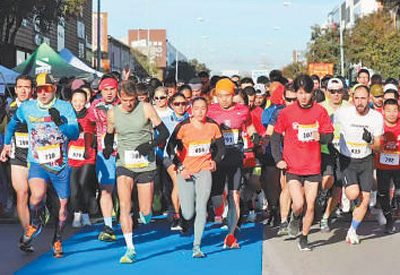 西班牙2025“欢乐春节”蛇年春节公路跑鸣枪开跑。人民日报记者 颜 欢摄